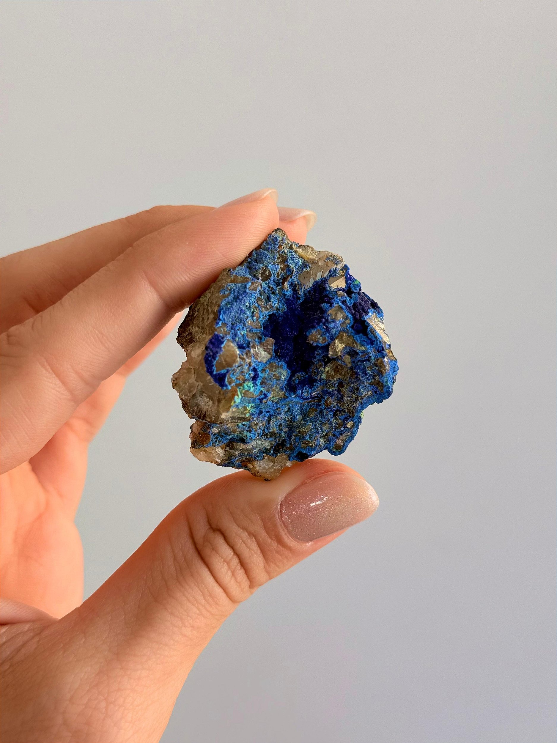 Durante meditação, rituais de autoconexão, momentos de introspecção ou como amuleto de clareza, transformação e intuição. A Azurita com Malaquita também pode ser mantida no ambiente para irradiar energia positiva, equilíbrio e inspiração.