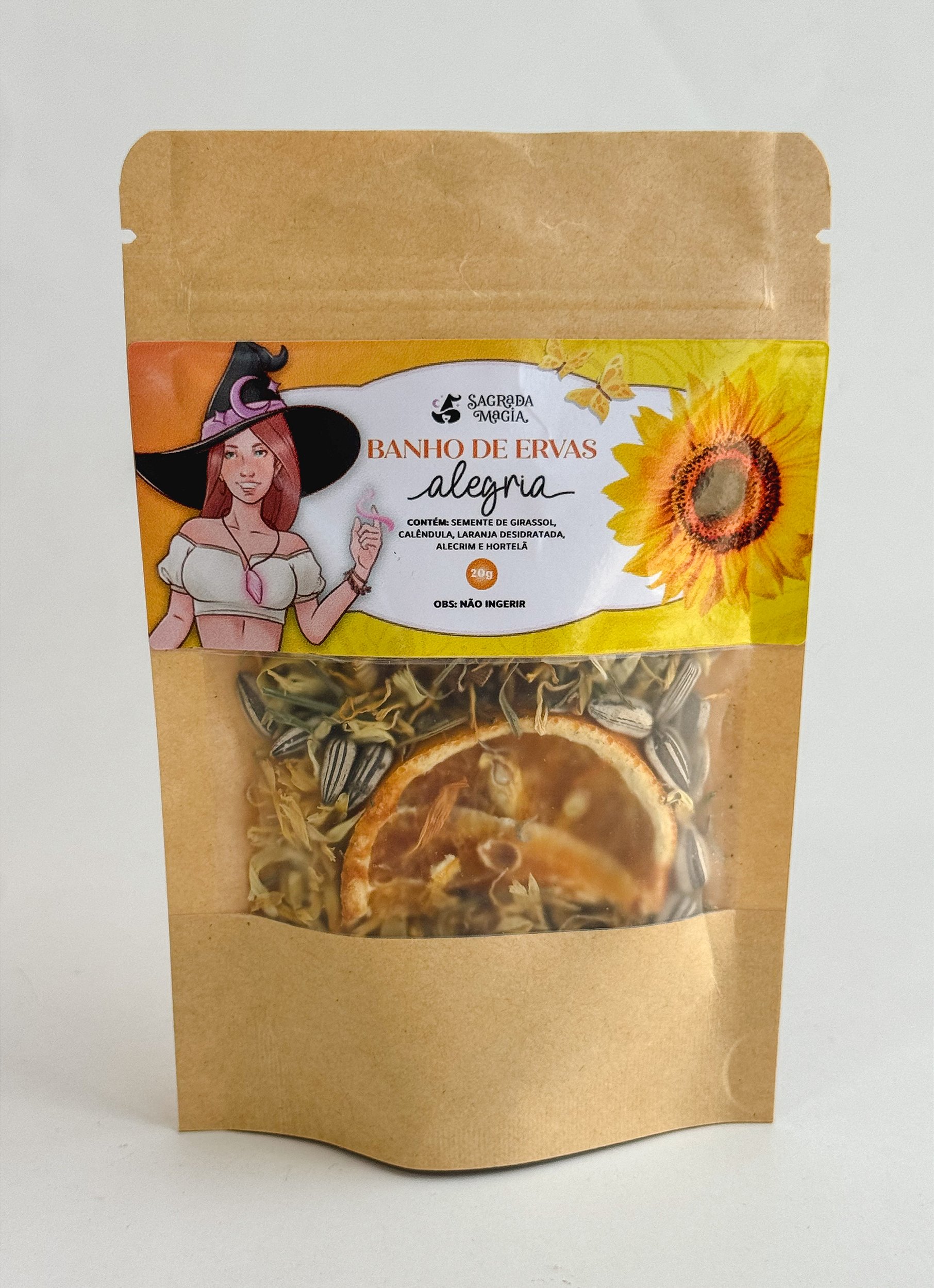 Muitas vezes o peso das rotinas e das preocupações do dia a dia oculta nossa alegria natural e nosso brilho interior. Esse banho atua como um reequilíbrio energético, renovando o campo áurico e trazendo uma sensação imediata de leveza e bem-estar. Cada erva presente foi escolhida para ativar a energia solar do corpo e da alma, despertando a força da alegria e da confiança em si mesmo.