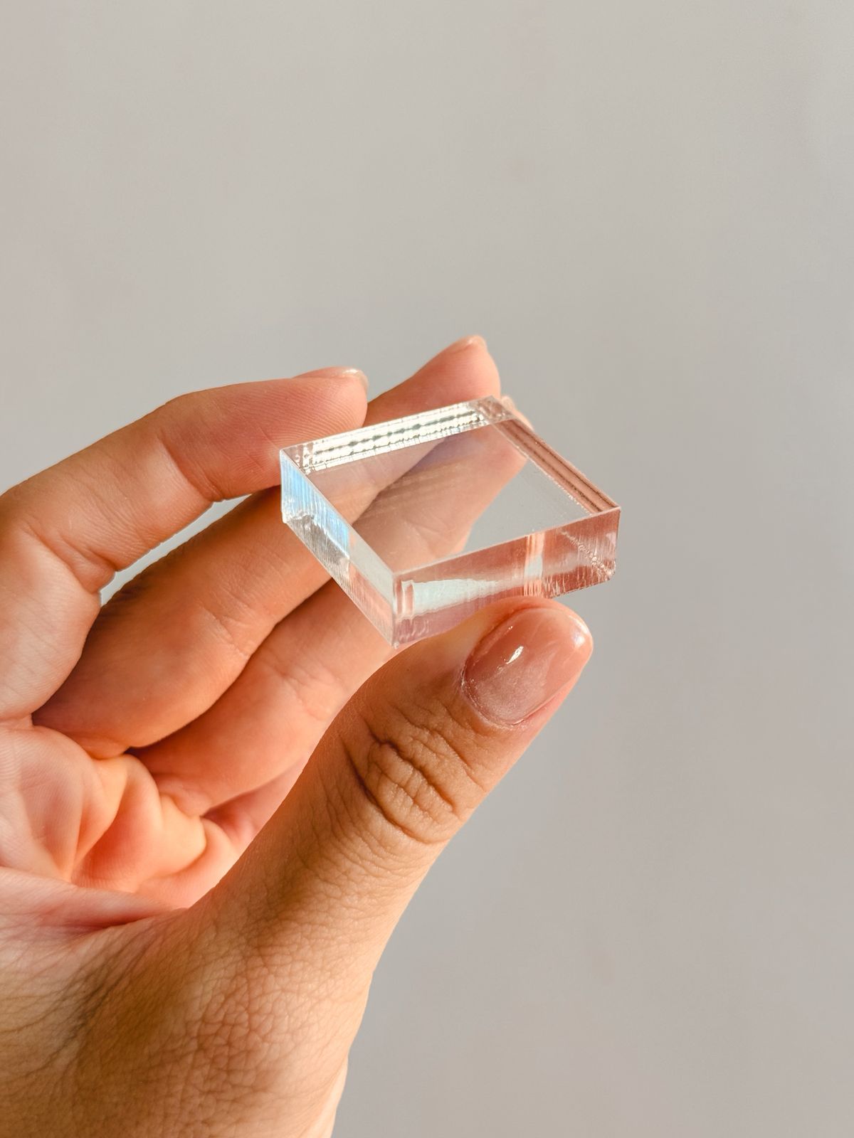 A base acompanha uma massinha de fixação reutilizável, que permite fixar a peça com segurança e também mudar a disposição sempre que quiser, sem danificar o cristal ou deixar resíduos.