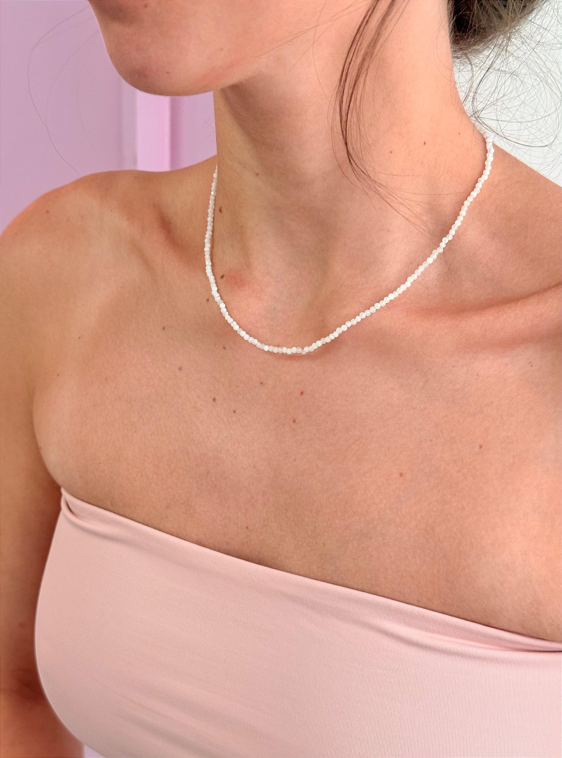 Tipo: Colar de Pedra da Lua lapidada em esferas multifacetadas de 2 milímetros