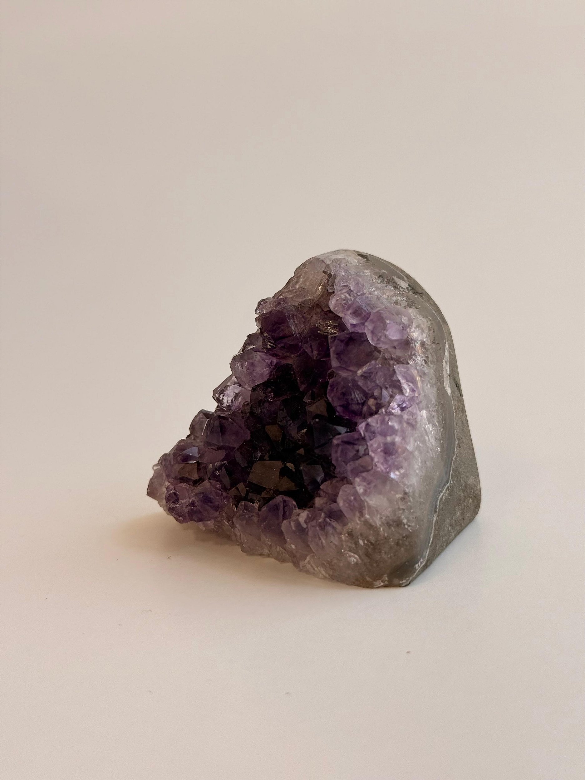 A Ametista é a pedra da espiritualidade e da intuição. É o cristal de maior eficácia na meditação, facilitando a conexão com seu Eu Superior. Transmite paz, espiritualidade, elimina o estresse e inspira a cura e intuição. Transmutação de pensamentos e energia, melhora padrão vibracional e desenvolvimento das habilidades intuitivas. Acalma o sistema nervoso, ameniza o estresse e a tensão interior. Elimina a raiva, medo, ansiedade. Auxilia no tratamento de enxaquecas e vícios. É o cristal que não pode faltar na sua vida.