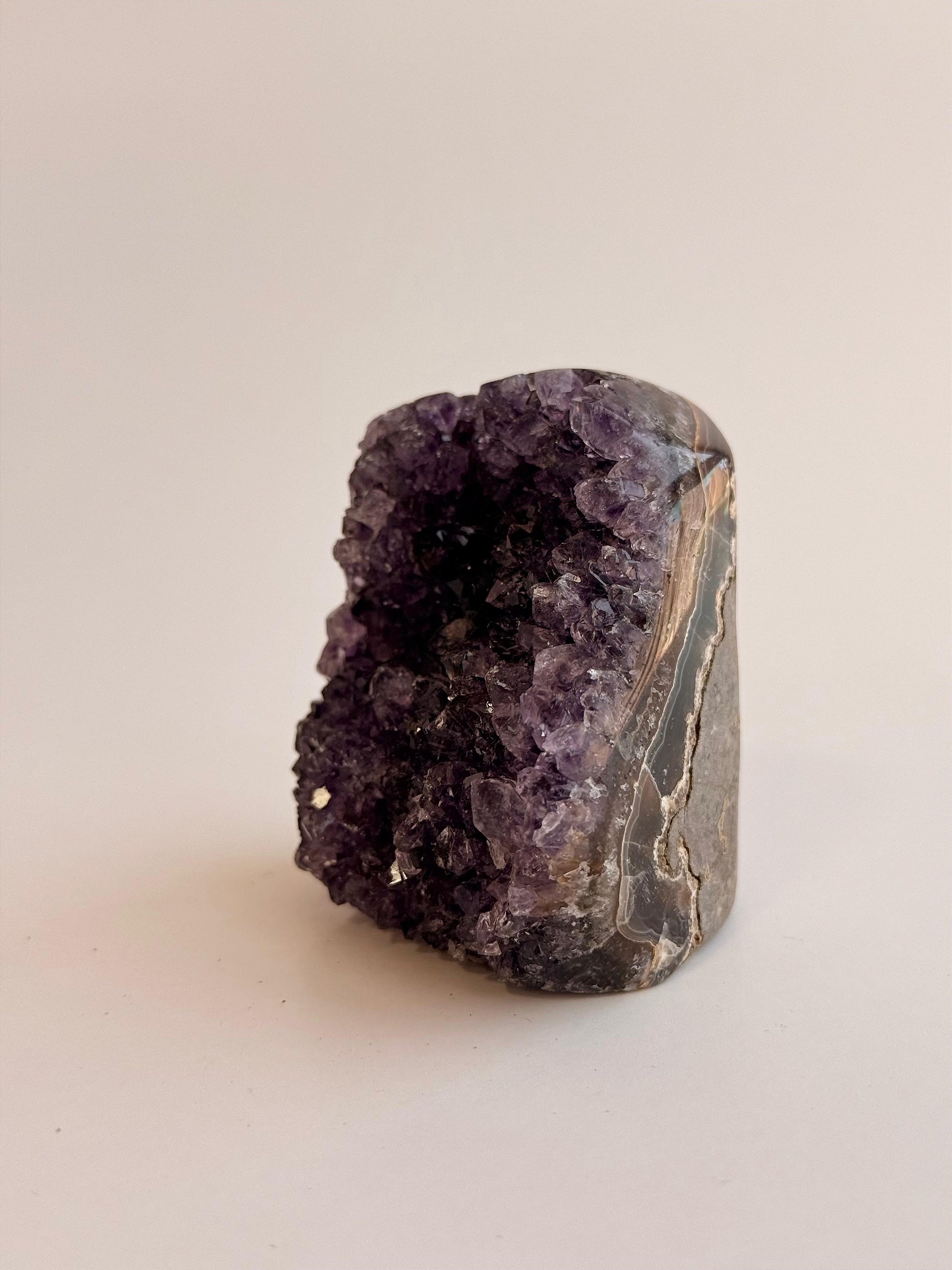 A Ametista é a pedra da espiritualidade e da intuição. É o cristal de maior eficácia na meditação, facilitando a conexão com seu Eu Superior. Transmite paz, espiritualidade, elimina o estresse e inspira a cura e intuição. Transmutação de pensamentos e energia, melhora padrão vibracional e desenvolvimento das habilidades intuitivas. Acalma o sistema nervoso, ameniza o estresse e a tensão interior. Elimina a raiva, medo, ansiedade. Auxilia no tratamento de enxaquecas e vícios. É o cristal que não pode faltar na sua vida.