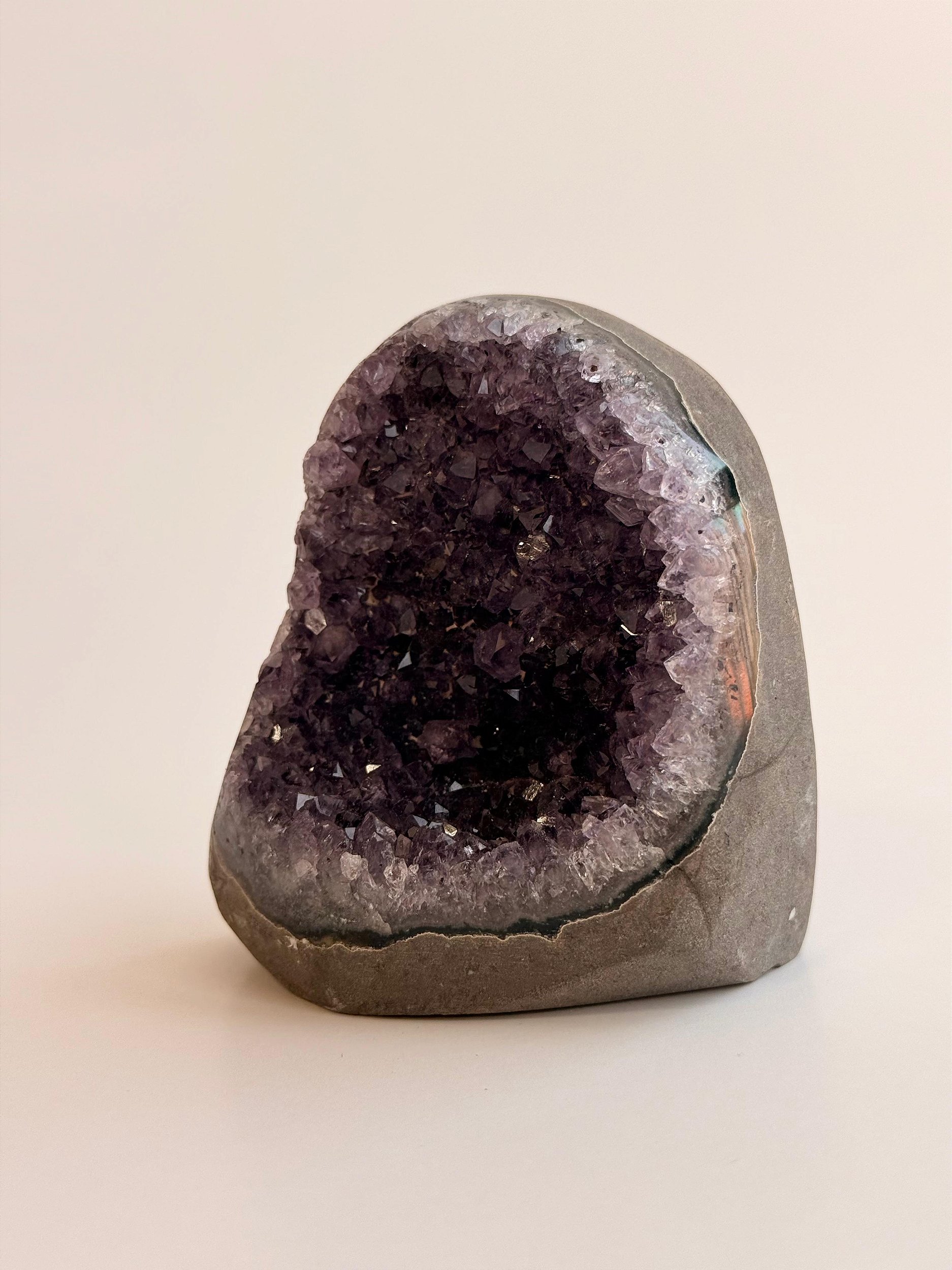 A Ametista é a pedra da espiritualidade e da intuição. É o cristal de maior eficácia na meditação, facilitando a conexão com seu Eu Superior. Transmite paz, espiritualidade, elimina o estresse e inspira a cura e intuição. Transmutação de pensamentos e energia, melhora padrão vibracional e desenvolvimento das habilidades intuitivas. Acalma o sistema nervoso, ameniza o estresse e a tensão interior. Elimina a raiva, medo, ansiedade. Auxilia no tratamento de enxaquecas e vícios. É o cristal que não pode faltar na sua vida.