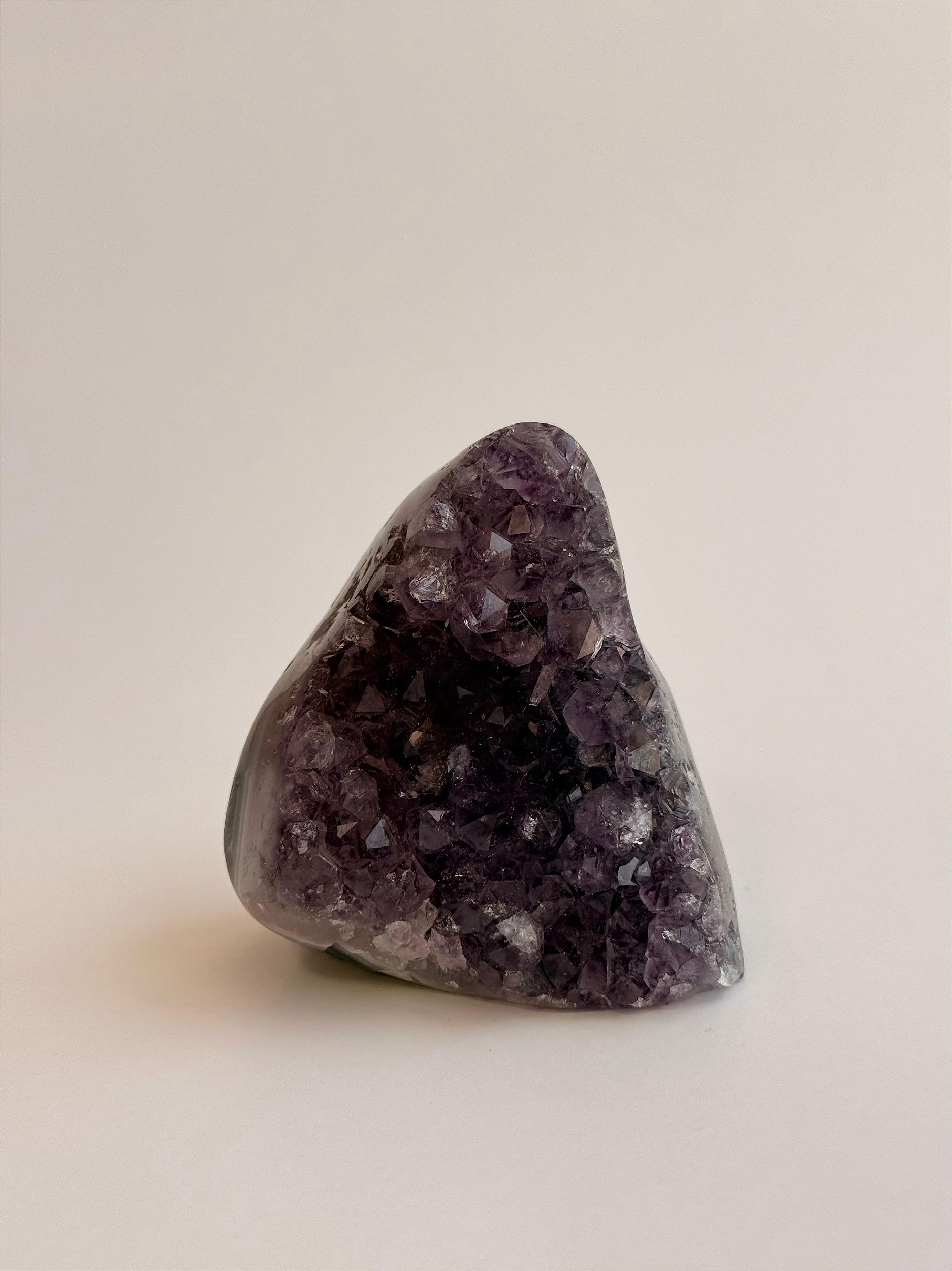 A Ametista é a pedra da espiritualidade e da intuição. É o cristal de maior eficácia na meditação, facilitando a conexão com seu Eu Superior. Transmite paz, espiritualidade, elimina o estresse e inspira a cura e intuição. Transmutação de pensamentos e energia, melhora padrão vibracional e desenvolvimento das habilidades intuitivas. Acalma o sistema nervoso, ameniza o estresse e a tensão interior. Elimina a raiva, medo, ansiedade. Auxilia no tratamento de enxaquecas e vícios. É o cristal que não pode faltar na sua vida.