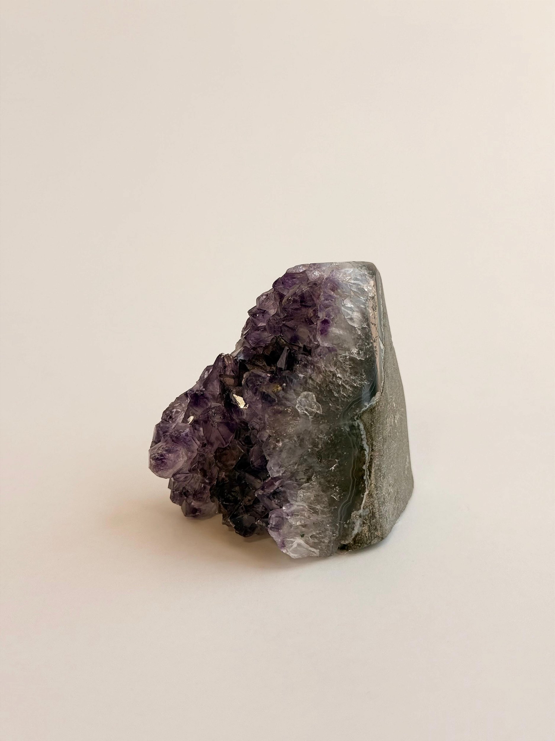 A Ametista é a pedra da espiritualidade e da intuição. É o cristal de maior eficácia na meditação, facilitando a conexão com seu Eu Superior. Transmite paz, espiritualidade, elimina o estresse e inspira a cura e intuição. Transmutação de pensamentos e energia, melhora padrão vibracional e desenvolvimento das habilidades intuitivas. Acalma o sistema nervoso, ameniza o estresse e a tensão interior. Elimina a raiva, medo, ansiedade. Auxilia no tratamento de enxaquecas e vícios. É o cristal que não pode faltar na sua vida.