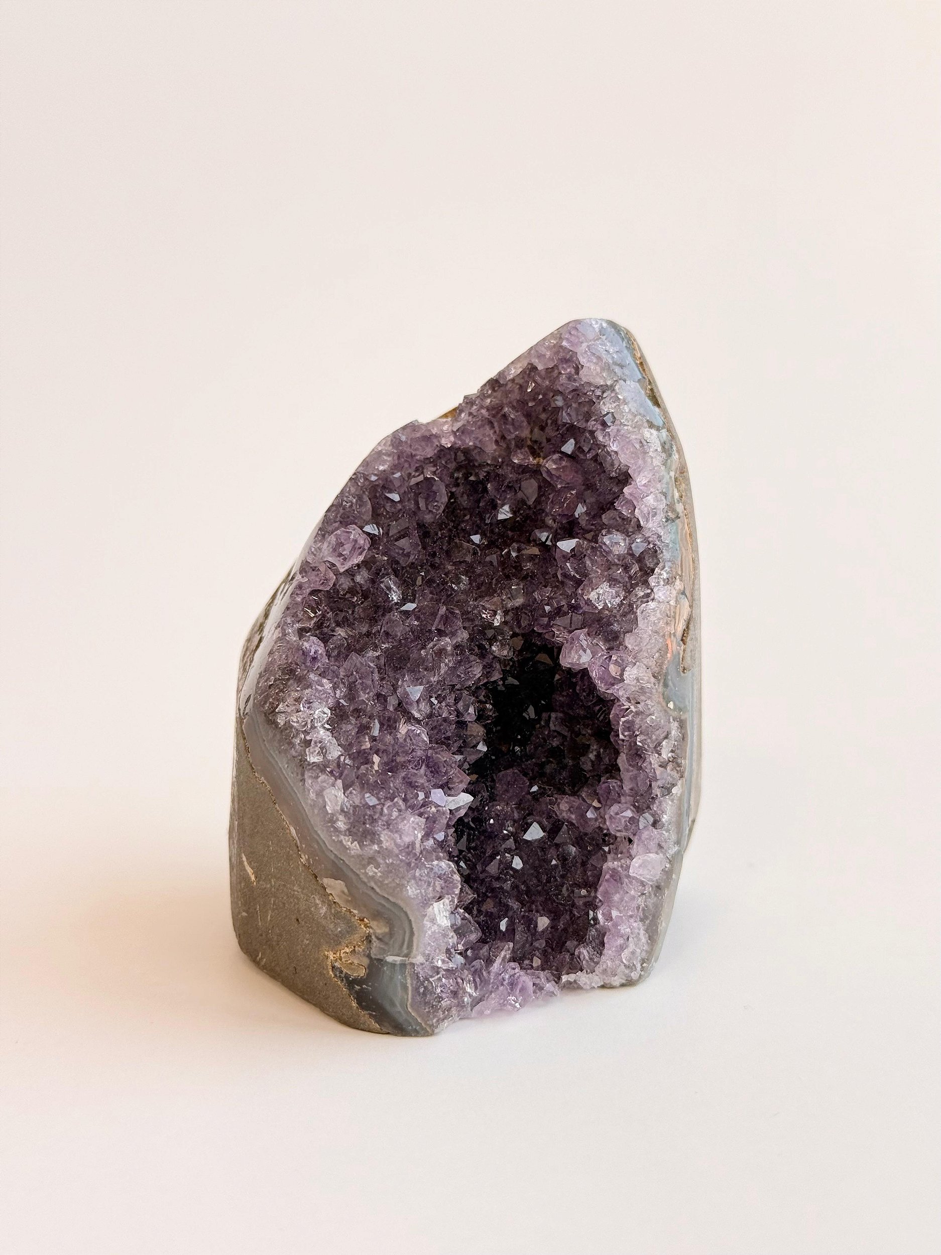 A Ametista é a pedra da espiritualidade e da intuição. É o cristal de maior eficácia na meditação, facilitando a conexão com seu Eu Superior. Transmite paz, espiritualidade, elimina o estresse e inspira a cura e intuição. Transmutação de pensamentos e energia, melhora padrão vibracional e desenvolvimento das habilidades intuitivas. Acalma o sistema nervoso, ameniza o estresse e a tensão interior. Elimina a raiva, medo, ansiedade. Auxilia no tratamento de enxaquecas e vícios. É o cristal que não pode faltar na sua vida.