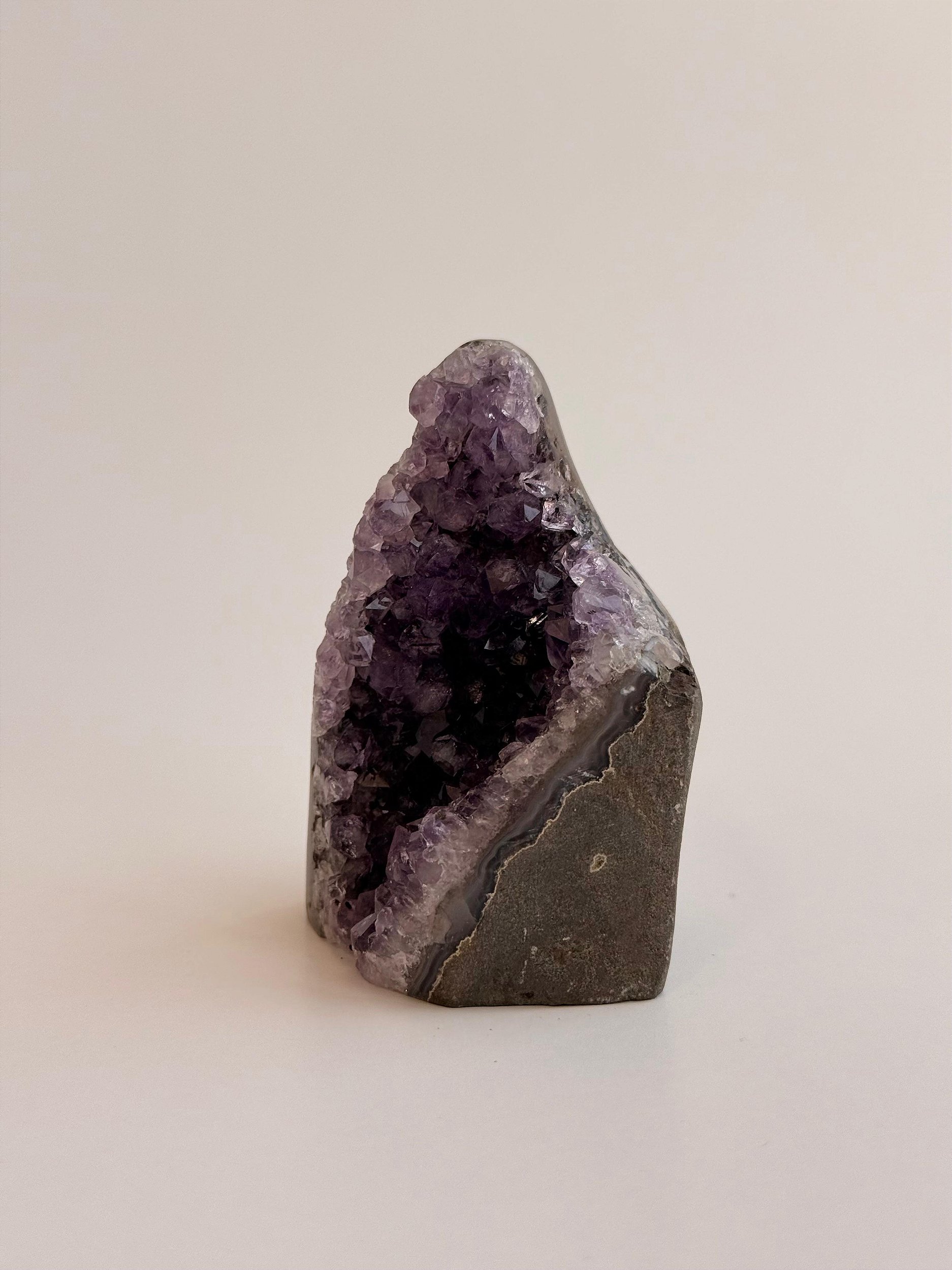 A Ametista é a pedra da espiritualidade e da intuição. É o cristal de maior eficácia na meditação, facilitando a conexão com seu Eu Superior. Transmite paz, espiritualidade, elimina o estresse e inspira a cura e intuição. Transmutação de pensamentos e energia, melhora padrão vibracional e desenvolvimento das habilidades intuitivas. Acalma o sistema nervoso, ameniza o estresse e a tensão interior. Elimina a raiva, medo, ansiedade. Auxilia no tratamento de enxaquecas e vícios. É o cristal que não pode faltar na sua vida.