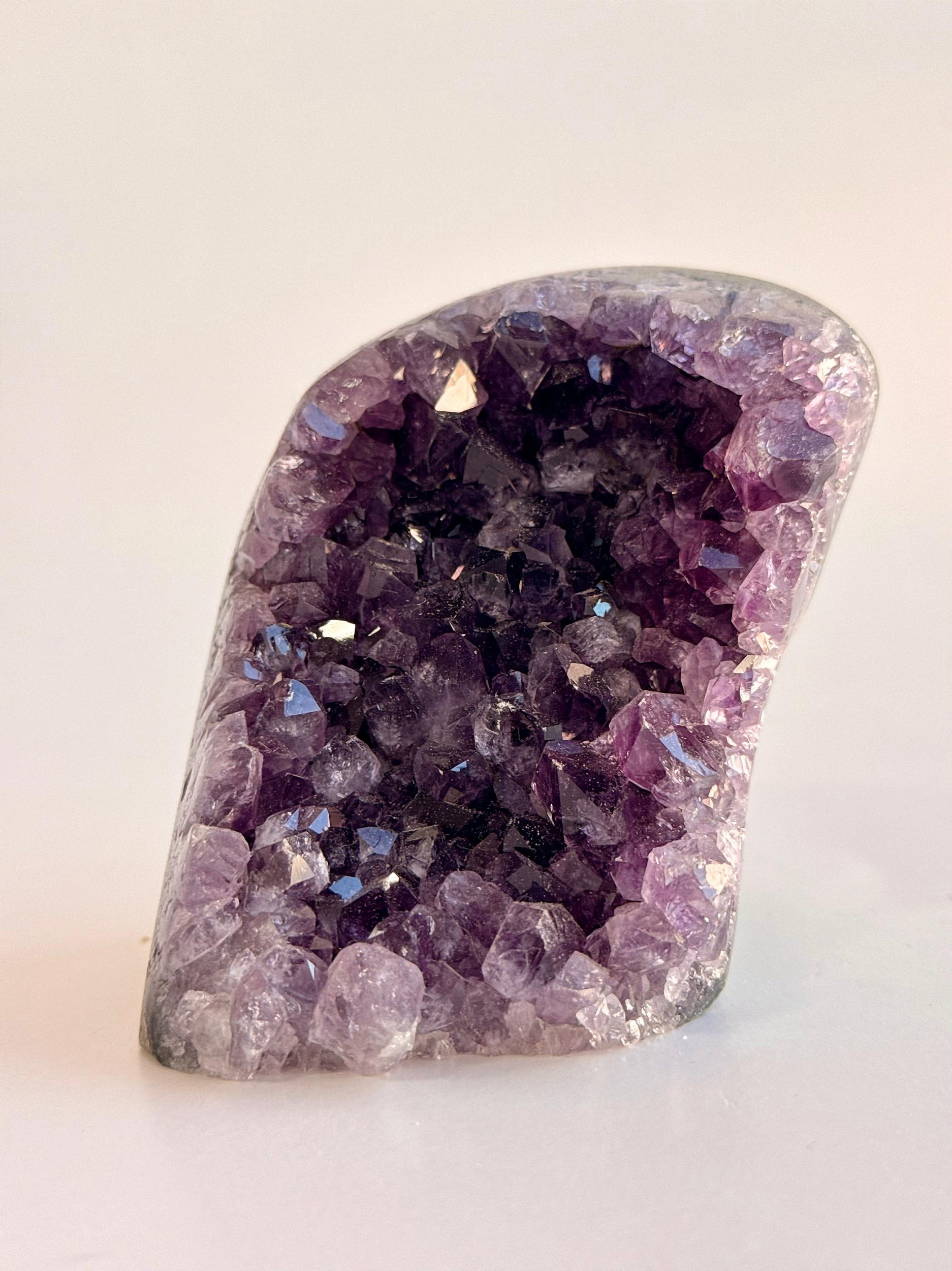 Quando estão nesse formado de "caverninha" são chamadas de Encantadas, com abertura frontal e cristais voltados para dentro, ela lembra visualmente um portal, um templo ou um espaço guardado, algo que “acolhe” e “protege” a energia. Seu visual desperta mistério, magia e encanto.