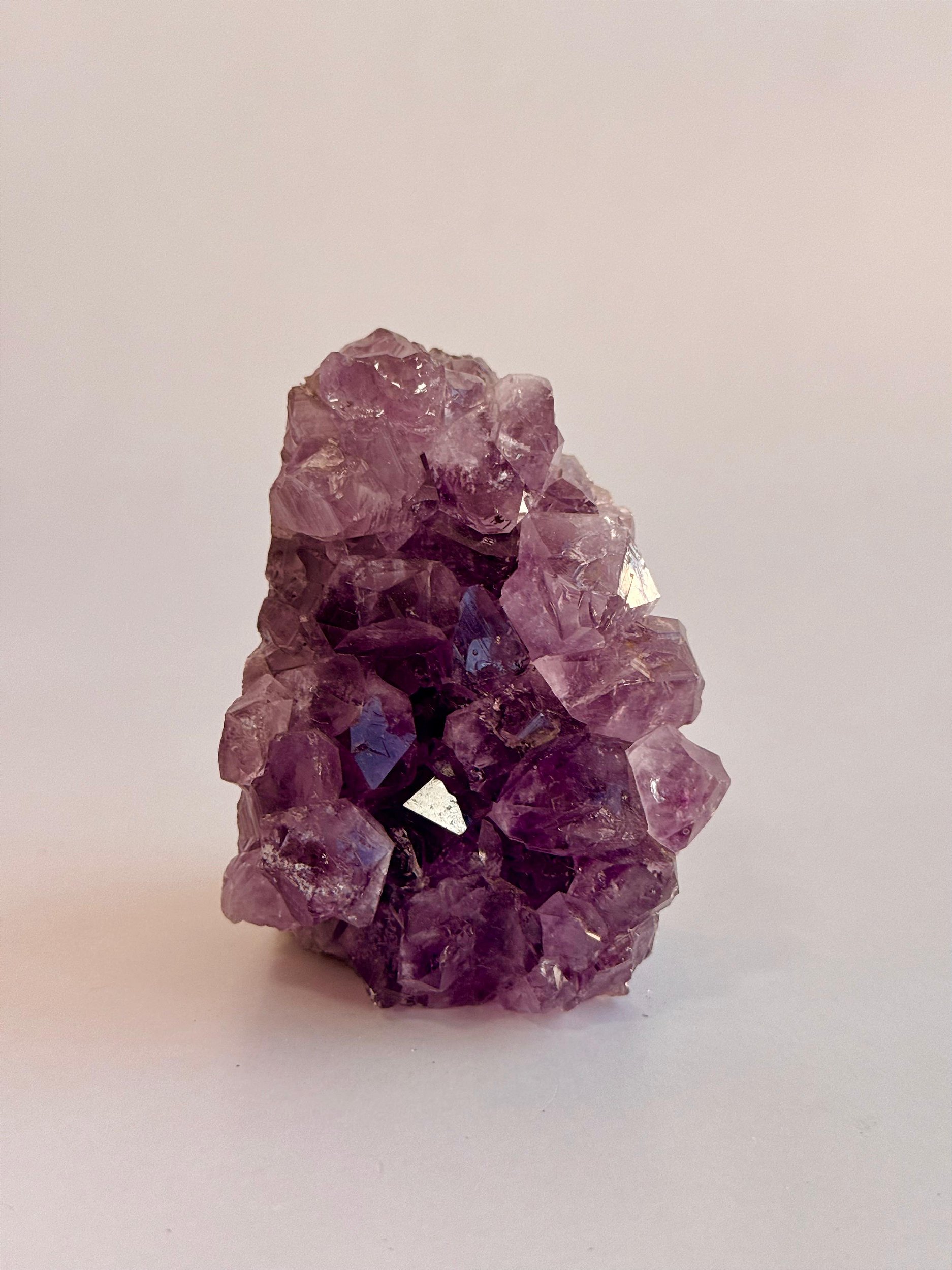 A Ametista é a pedra da espiritualidade e da intuição. É o cristal de maior eficácia na meditação, facilitando a conexão com seu Eu Superior. Transmite paz, espiritualidade, elimina o estresse e inspira a cura e intuição. Transmutação de pensamentos e energia, melhora padrão vibracional e desenvolvimento das habilidades intuitivas. Acalma o sistema nervoso, ameniza o estresse e a tensão interior. Elimina a raiva, medo, ansiedade. Auxilia no tratamento de enxaquecas e vícios. É o cristal que não pode faltar na sua vida.