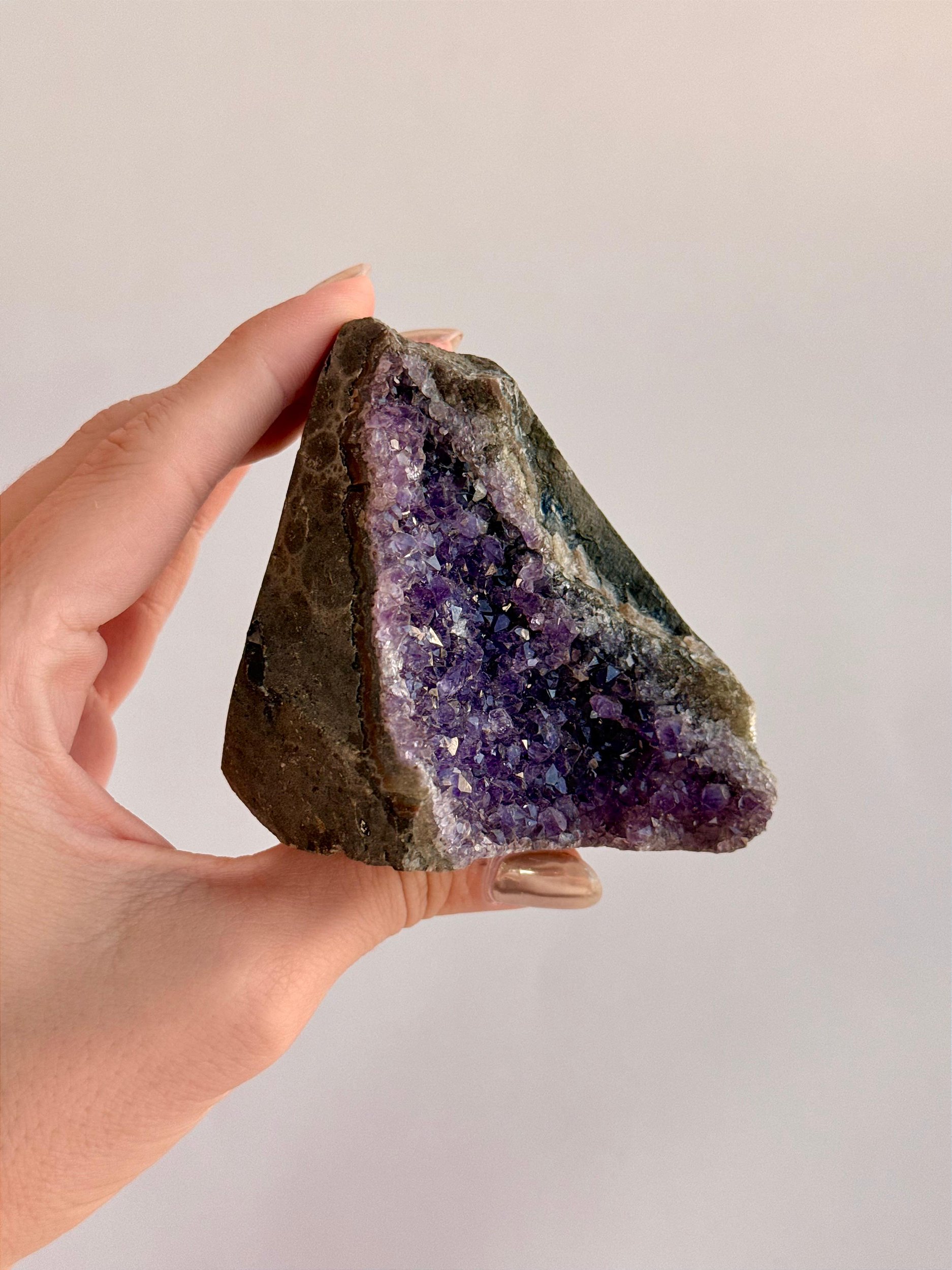 A Ametista é a pedra da espiritualidade e da intuição. É o cristal de maior eficácia na meditação, facilitando a conexão com seu Eu Superior. Transmite paz, espiritualidade, elimina o estresse e inspira a cura e intuição. Transmutação de pensamentos e energia, melhora padrão vibracional e desenvolvimento das habilidades intuitivas. Acalma o sistema nervoso, ameniza o estresse e a tensão interior. Elimina a raiva, medo, ansiedade. Auxilia no tratamento de enxaquecas e vícios. É o cristal que não pode faltar na sua vida.