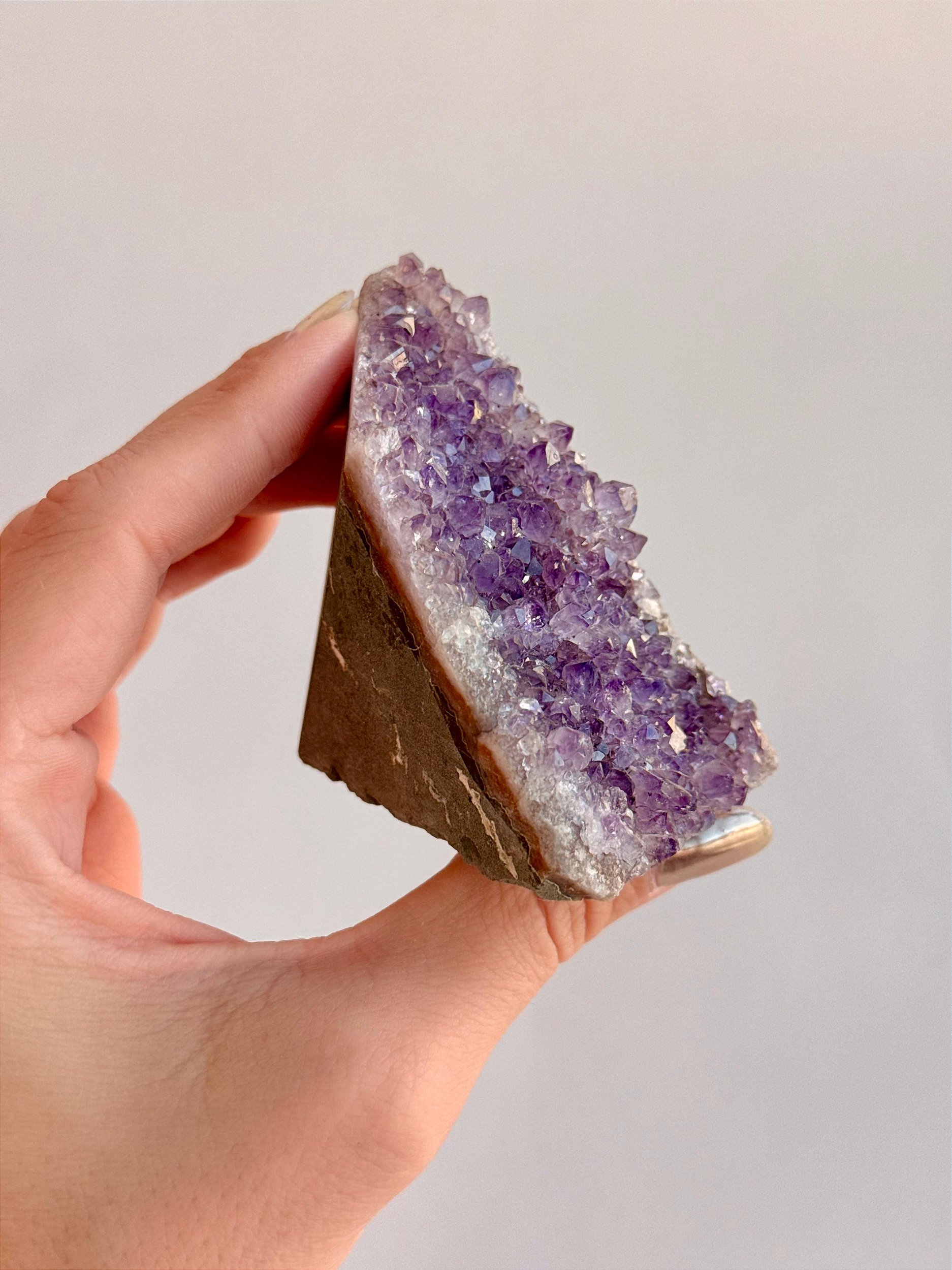 A Ametista é a pedra da espiritualidade e da intuição. É o cristal de maior eficácia na meditação, facilitando a conexão com seu Eu Superior. Transmite paz, espiritualidade, elimina o estresse e inspira a cura e intuição. Transmutação de pensamentos e energia, melhora padrão vibracional e desenvolvimento das habilidades intuitivas. Acalma o sistema nervoso, ameniza o estresse e a tensão interior. Elimina a raiva, medo, ansiedade. Auxilia no tratamento de enxaquecas e vícios. É o cristal que não pode faltar na sua vida.