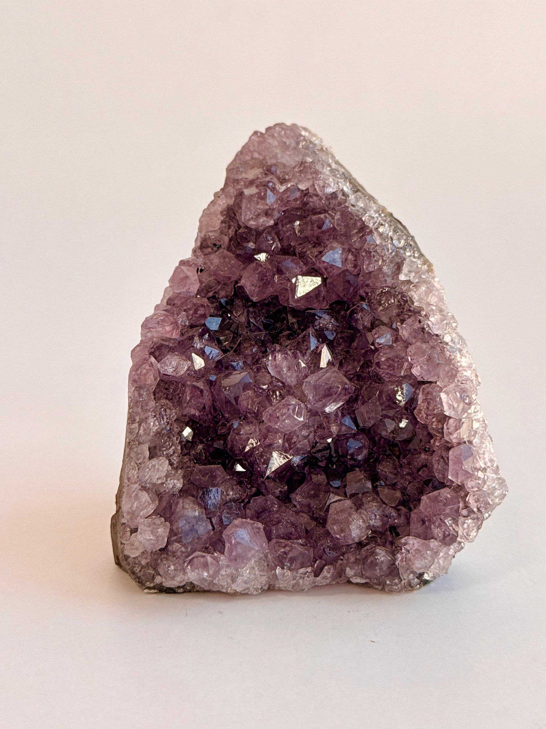A Ametista é a pedra da espiritualidade e da intuição. É o cristal de maior eficácia na meditação, facilitando a conexão com seu Eu Superior. Transmite paz, espiritualidade, elimina o estresse e inspira a cura e intuição. Transmutação de pensamentos e energia, melhora padrão vibracional e desenvolvimento das habilidades intuitivas. Acalma o sistema nervoso, ameniza o estresse e a tensão interior. Elimina a raiva, medo, ansiedade. Auxilia no tratamento de enxaquecas e vícios. É o cristal que não pode faltar na sua vida.