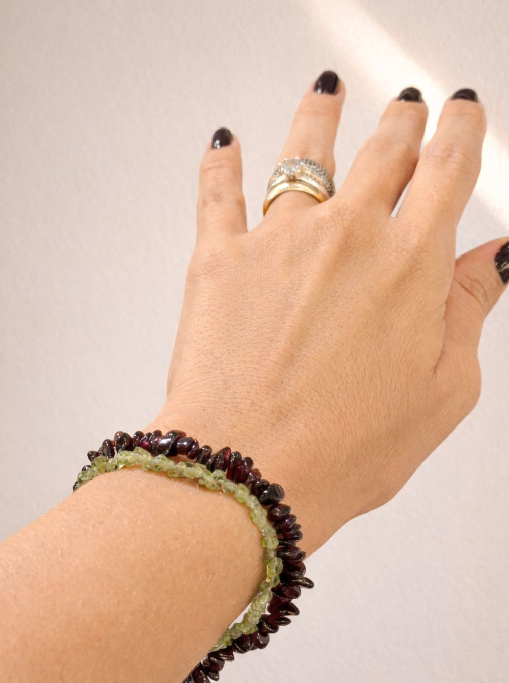 1 unidade de pulseira de pedra natural de Granada e 1 unidade de pulseira de pedra natural de Peridoto