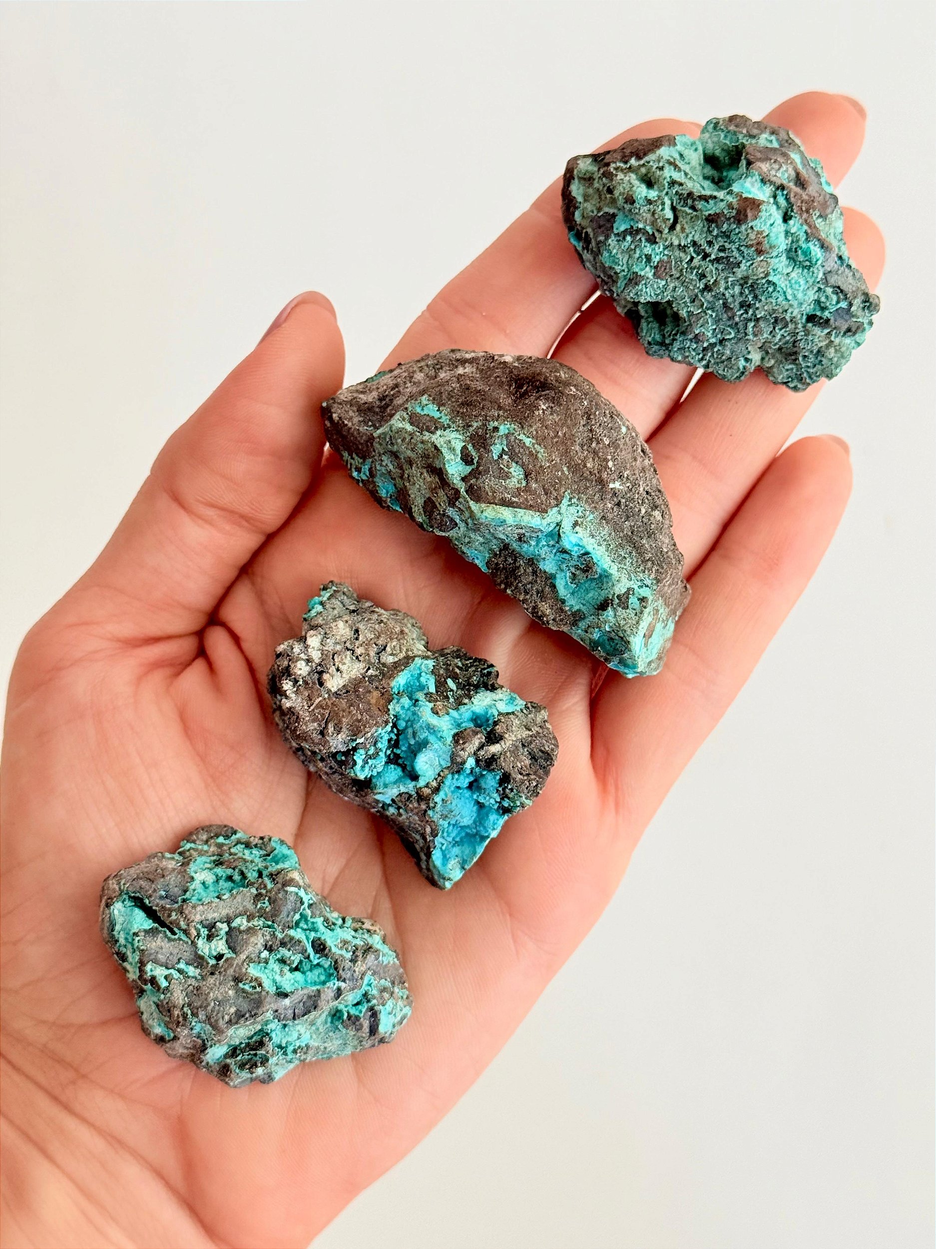 ✅ Comunicação verdadeira e harmoniosa: Graças à presença da Turquesa, Azurita e Crisocola, a pedra atua também no chakra laríngeo, promovendo comunicação clara e compassiva, expressão autêntica e harmonia nas relações. Excelente para quem tem medo de se expressar ou vive conflitos com pessoas próximas.