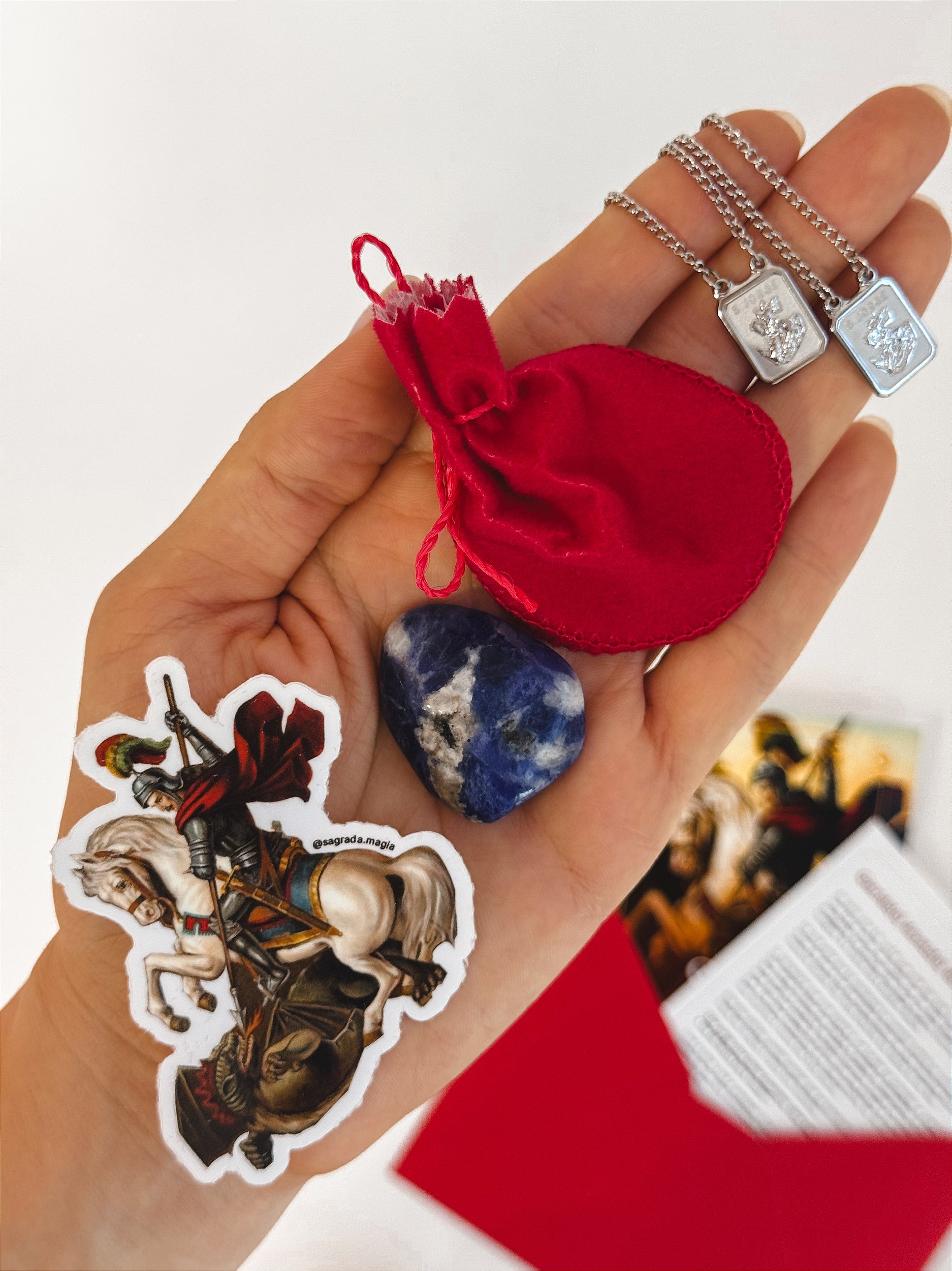 Esse kit é um amuleto de proteção, força interior e direção espiritual. Inspirado na energia poderosa de São Jorge, ele traz elementos que te conectam com sua coragem, firmeza e capacidade de superar obstáculos.