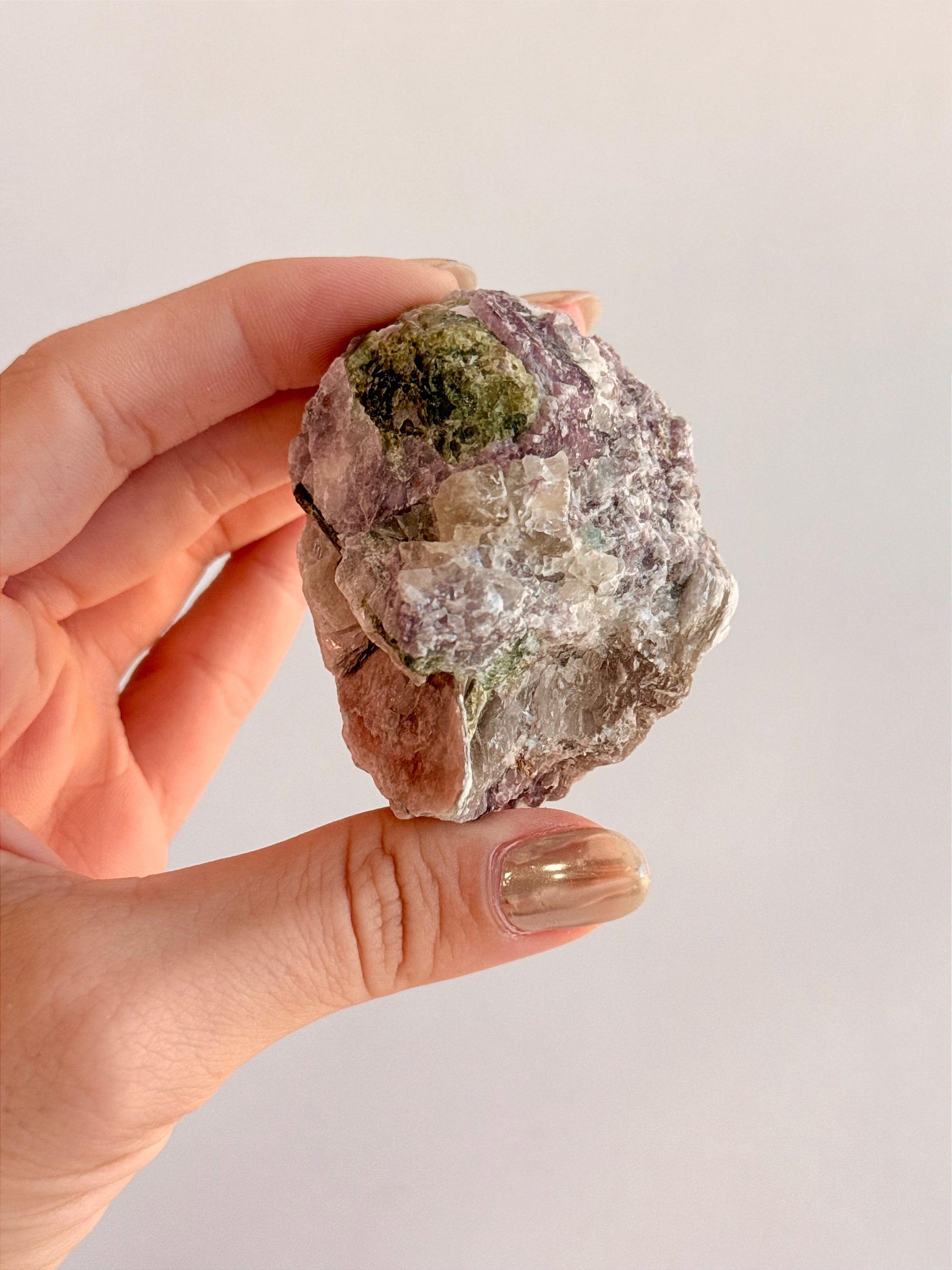 Lepidolita Bruta com Inclusão - Peça Única - LEPINC04 114g - Missão de Vida; Fé e Calma