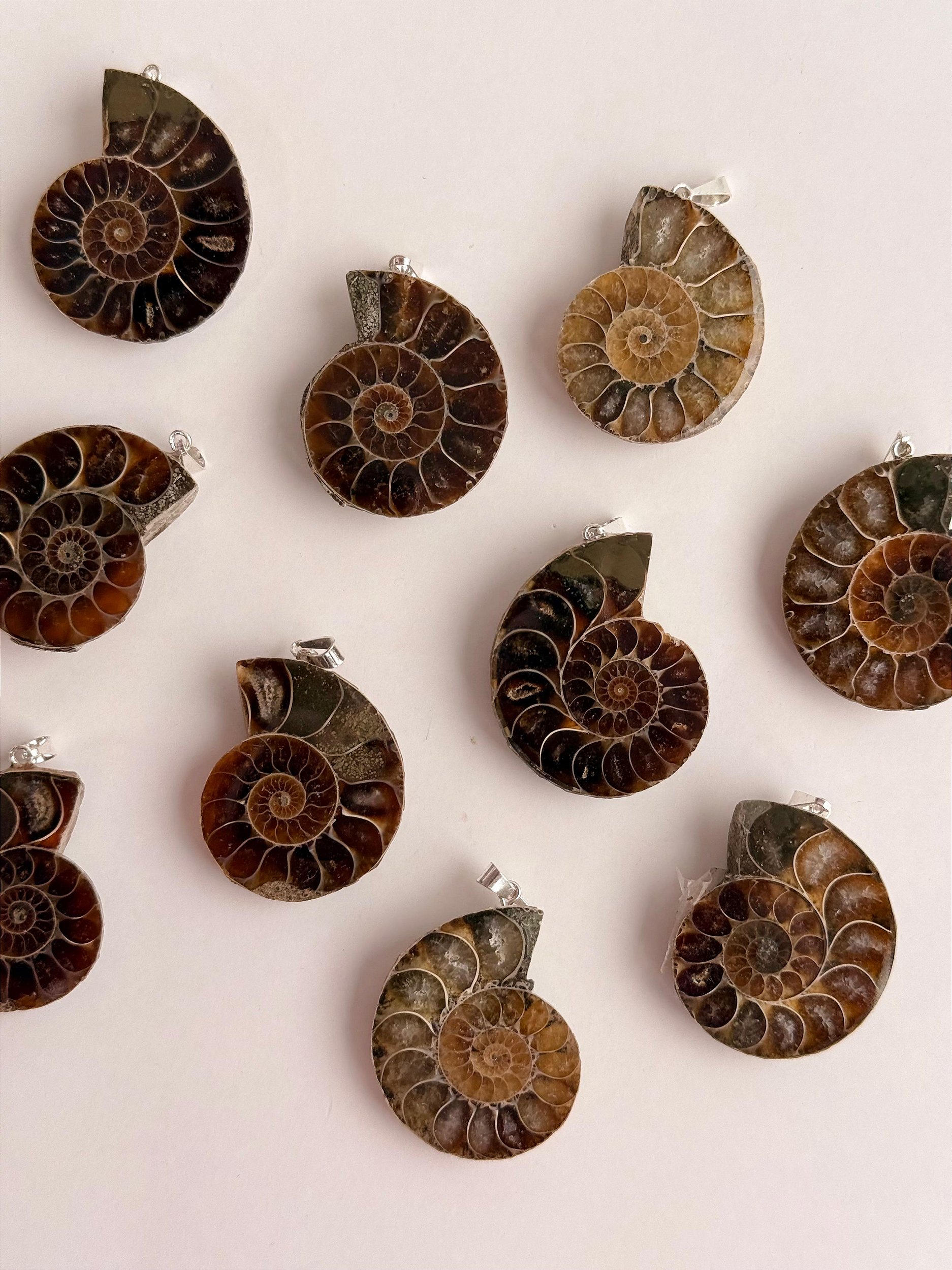 Os amonites são moluscos cefalópodes que surgiram no período Devoniano, há 409 milhões de anos, viveram nos oceanos da terra e foram extintos junto com os dinossauros, no fim do Cretáceo, 66 milhões de anos atrás.