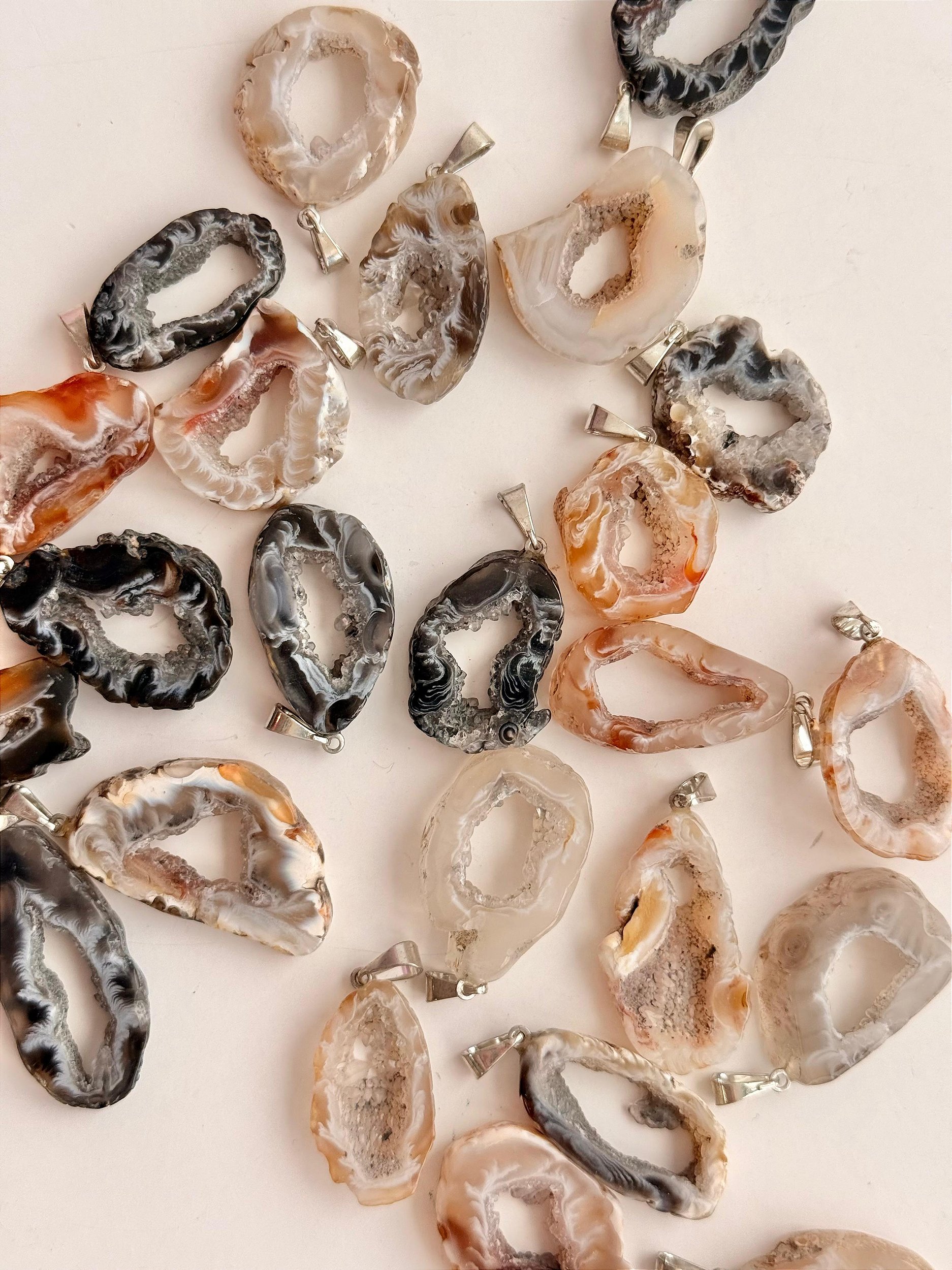 Os geodos conservam e ampliam a energia dentro deles, agindo como um gerador de energia. Graças ao seu formato com aparência de caverna, os geodos difundem lentamente a energia, suavizando-a. Podem ser usados para proteção e para estimular o crescimento espiritual. Os geodos ajudam a romper hábitos nocivos e são benéficos para personalidades viciosas e excessivamente indulgentes. A ágata proporciona equilíbrio emocional, físico e intelectual e auxilia na cura de bloqueios emocionais. Possui energia suave, estimula aceitação e a confiança em nós mesmos. Ela também intensifica as faculdades mentais, ao mesmo tempo que melhora a concentração. Coloque virado para a porta para atrair e segurar a sorte. Pode ser usado na sala de estar, pois eleva a frequência do ambiente. Facilita a conexão em momentos de meditação, amplia a positividade e traz luz. Quando colocado no escrotório ou na mesa de trabalho, traz direcionamento e equulíbrio. Ela também possui o poder de purificar e energizar os outros cristais.