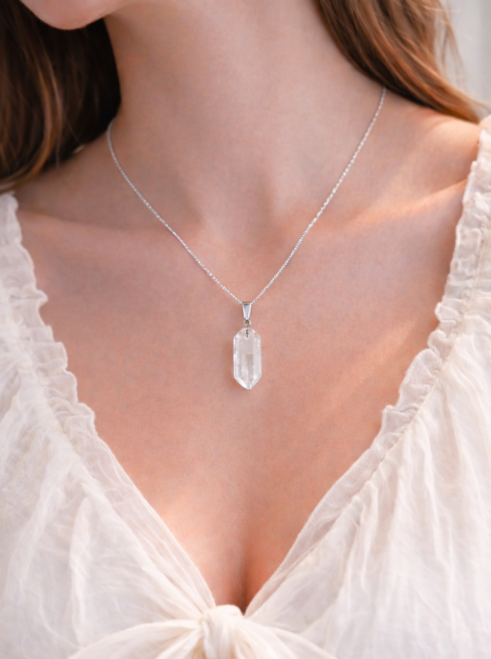 Contém 1 pingente ponta de Quartzo Cristal bruto