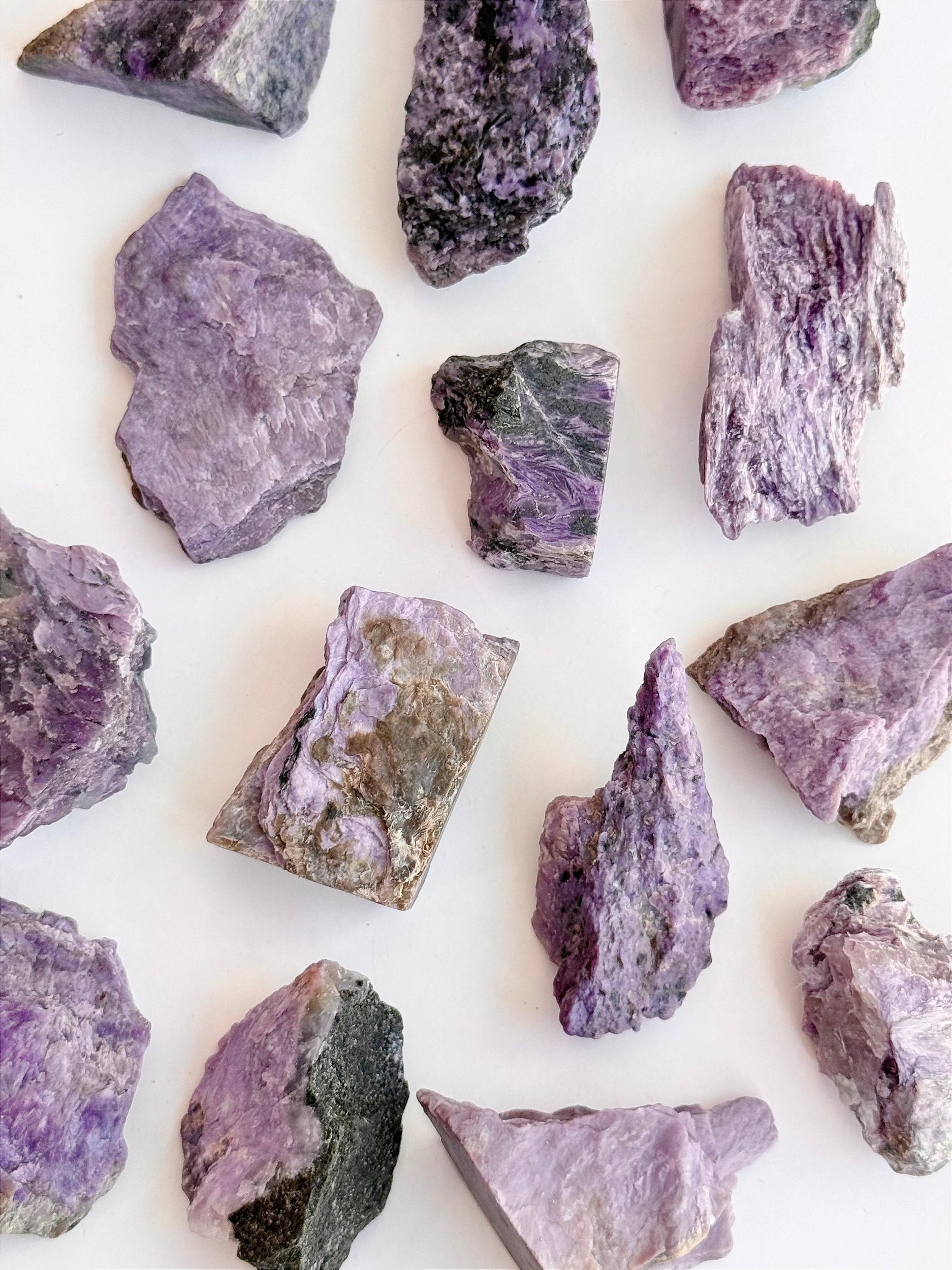 A Charoita é a pedra dos trabalhadores da luz, médiuns, curadores, terapeutas e missionários. Ela nos insipara a servir e aumenta nossa conexão com a luz, nos levando pelos caminhos da caridade, incentivando a nossa evolução e as dos que estão ao nosso redor. Também facilita a percepção e integração com energias da mais elevada frequência, que pode nos ser mais difícil de acessar, devido à vibração densa do planeta terra.