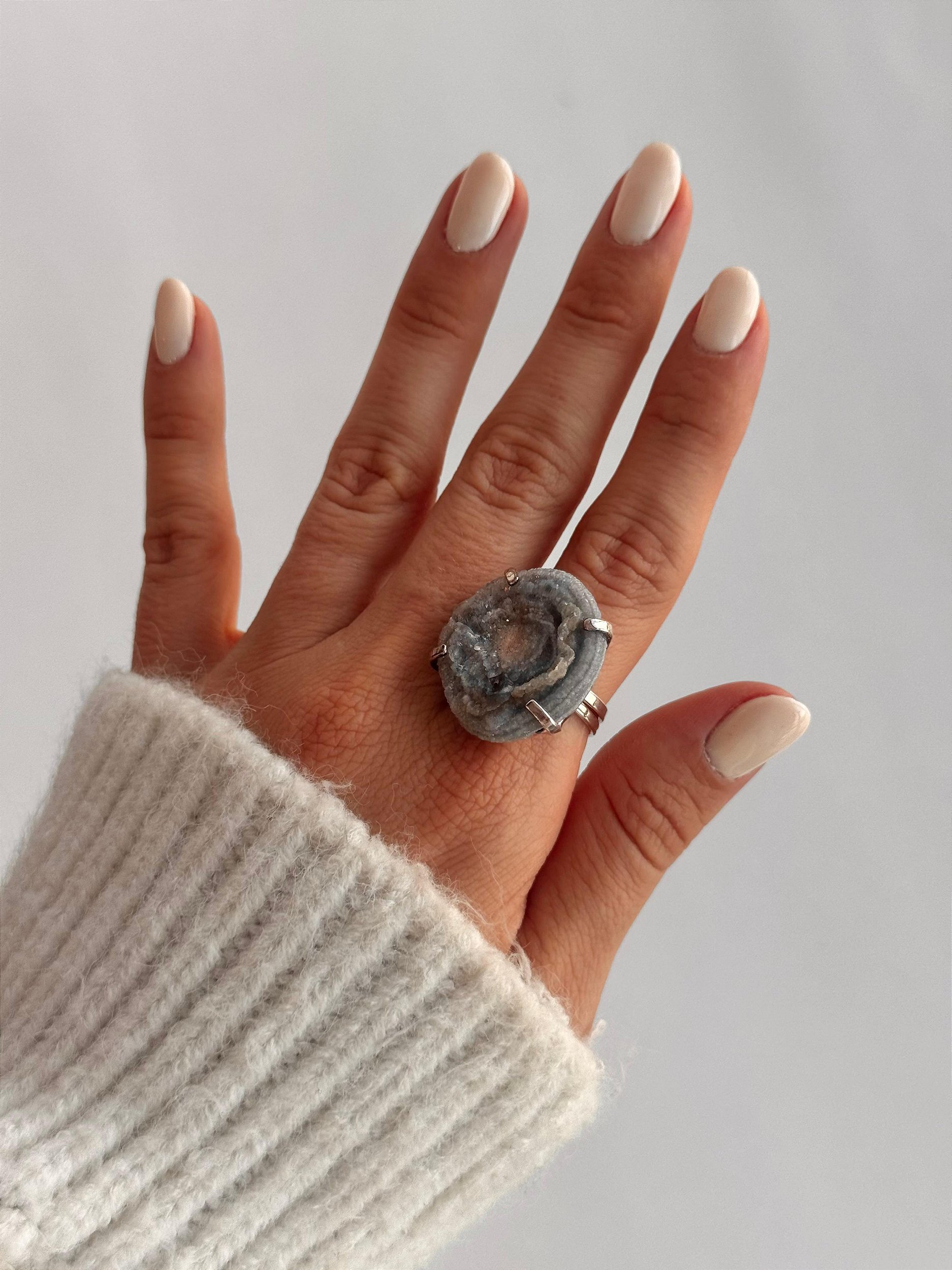Assim, usar esse anel de calcedônia é como carregar consigo um amuleto de serenidade e clareza, mantendo sua energia equilibrada e positiva ao longo do dia.