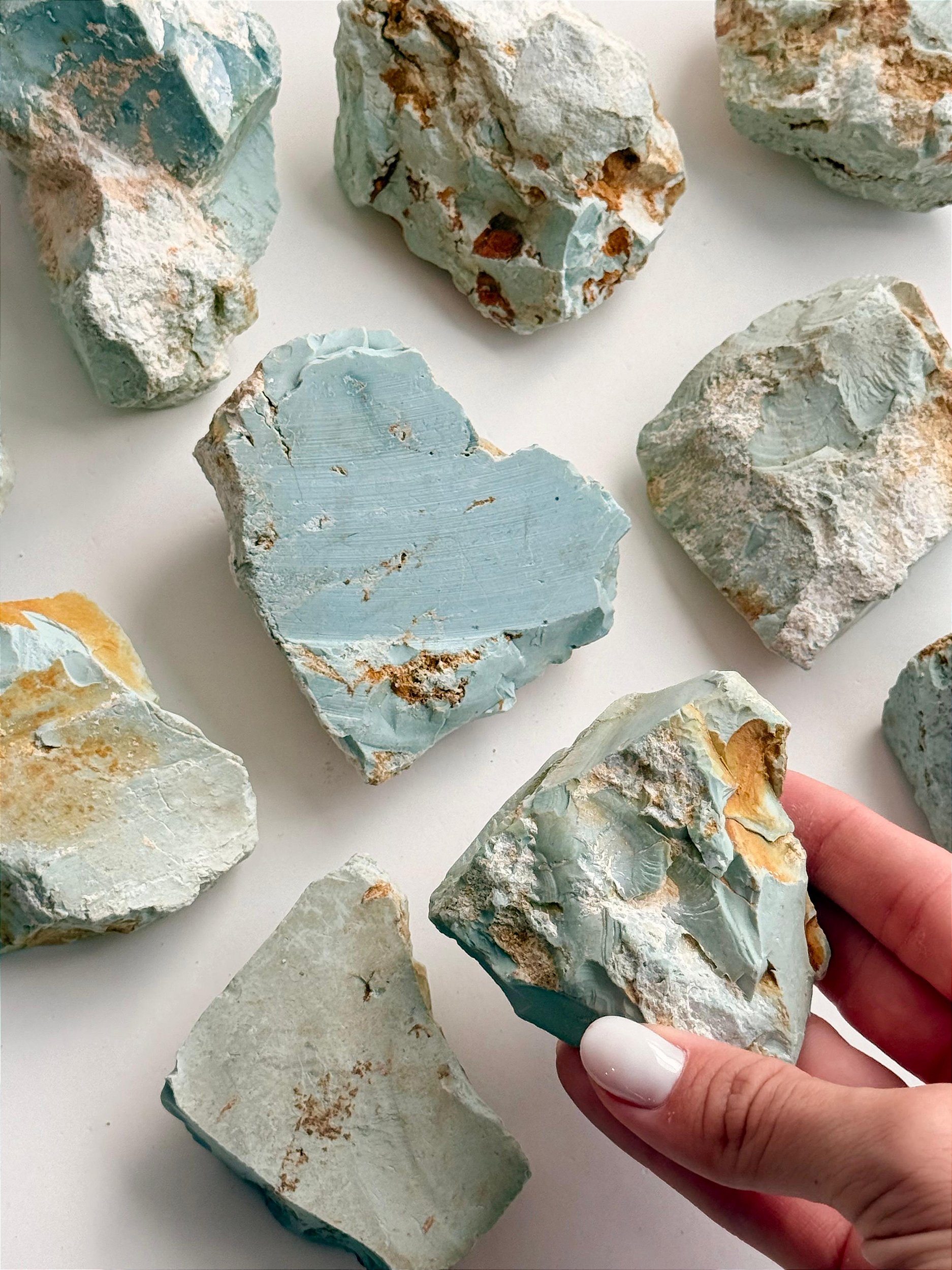 ⭐ Cuidados: Evite molhar esse cristal, pois a Turquesa é uma pedra porosa e sensível à umidade. O contato com água pode alterar sua cor e estrutura. Evite também água com sal e produtos químicos.