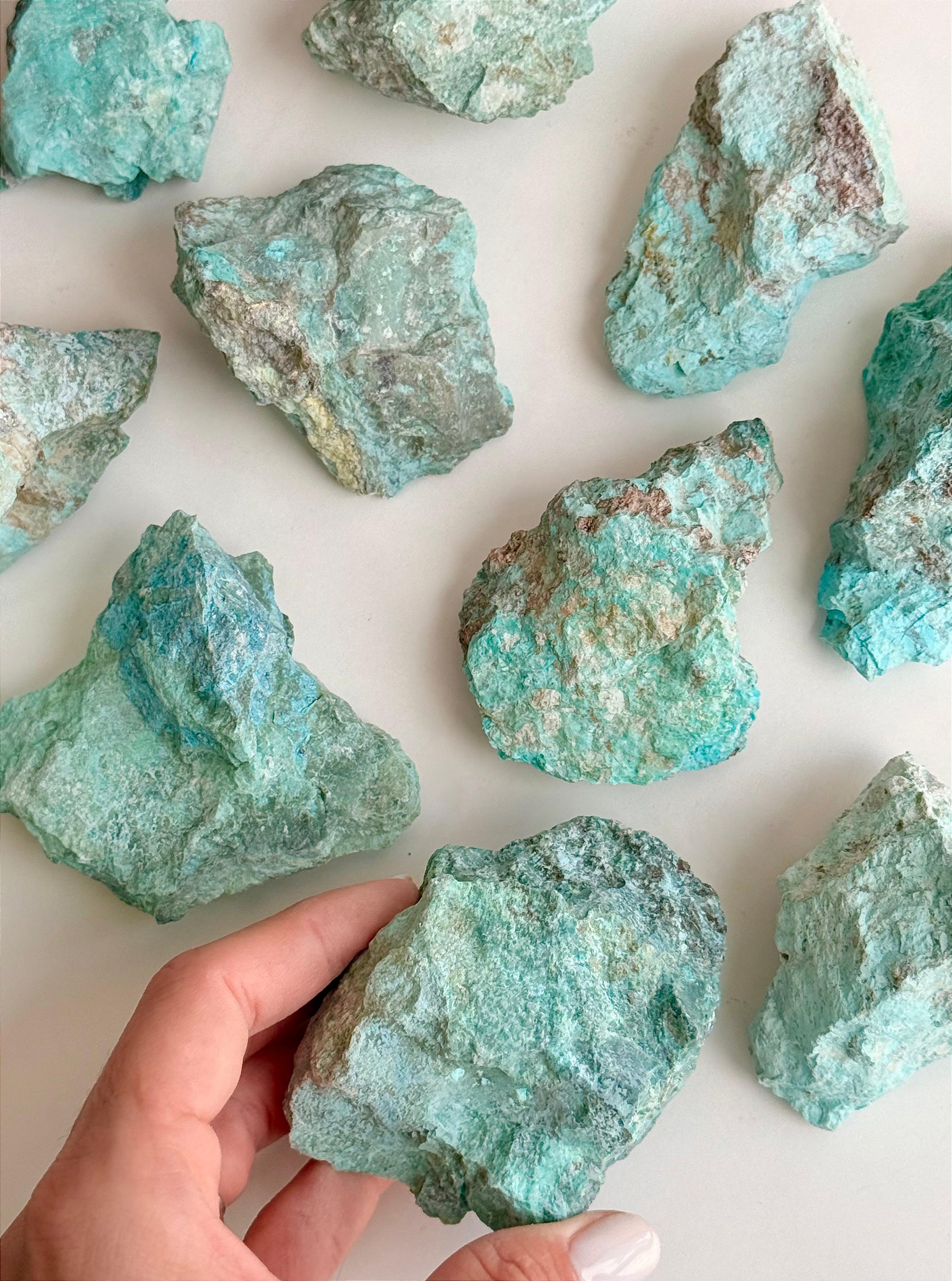 ⭐ Cuidados: Evite molhar esse cristal, pois a Turquesa é uma pedra porosa e sensível à umidade. O contato com água pode alterar sua cor e estrutura. Evite também água com sal e produtos químicos.