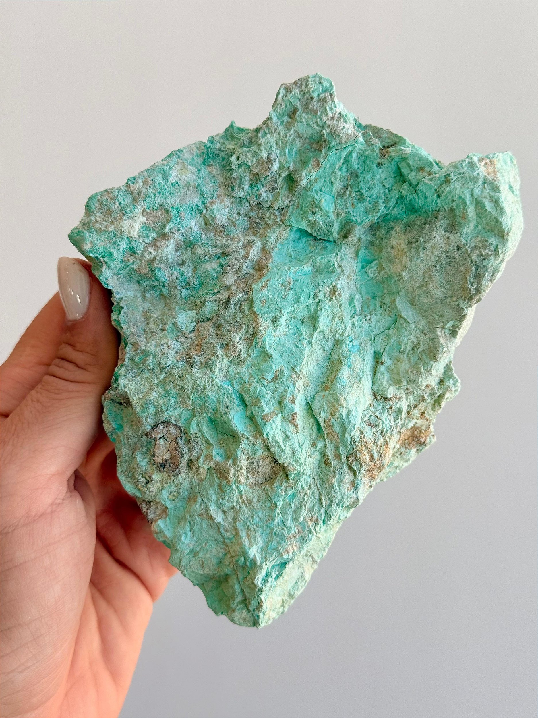 ⭐ Cuidados: Evite molhar esse cristal, pois a Turquesa é uma pedra porosa e sensível à umidade. O contato com água pode alterar sua cor e estrutura. Evite também água com sal e produtos químicos.